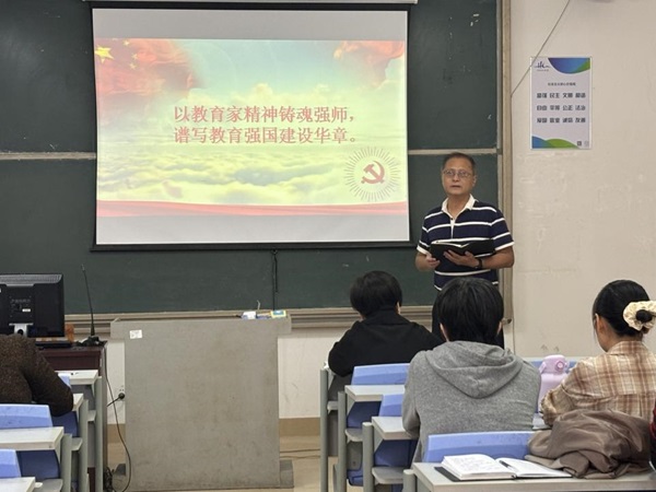 会议伊始,全体教师集中研学党的二十届四中全会关于教育领域的重要部署,重点围绕"深化教育领域综合改革""加强师德师风建设""健全师德建设长效机制"等核心内容展开深入研讨。接着,涂宇宁院长结合学院学科特色与育人实践,对师德师风建设提出几点具体要求。他指出,全体教师要深刻认识师德师风是教师的"第一标准",既要筑牢底线思维,更要树立高线追求,将师德规范内化于心、外化于行。针对数字经济(产业)领域科研与教学特点,他特别警示要坚决杜绝学术不端、数据造假、课堂言行失范、敷衍教学等问题,并号召全体教师以此次学习为契机,争做有理想信念、有道德情操、有扎实学识、有仁爱之心的"四有"好老师,当好学生健康成长的指导者和引路人。随后,与会教师结合自身教学科研实际交流感悟,并表示今后将把师德要求贯穿教学全过程,推动形成"风清气正、崇德向善"的育人氛围。