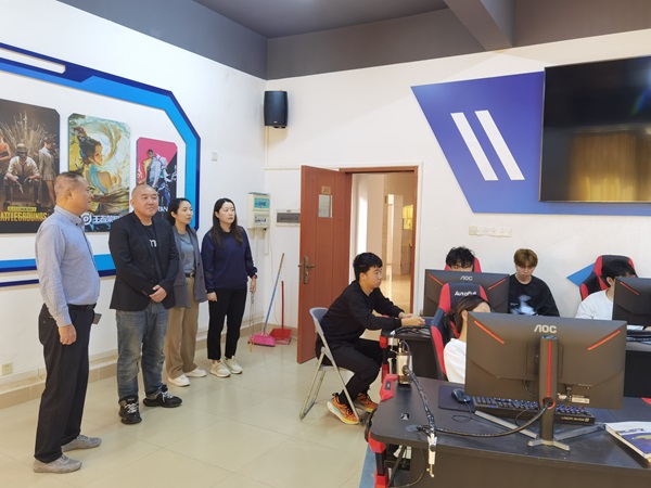 座谈会上,涂院长首先对季董事长一行的到访表示热烈欢迎,详细介绍了学院的专业设置、办学特色及人才培养成果,重点阐述了电竞专业实训基地打造、师资队伍建设等方面的规划,并表示,学校高度重视电竞教育与产业的深度融合,期待与菁茼教育携手探索人才培养新路径。随后,季董事长简要介绍了公司的概况,并结合自身行业深耕经验,全面解析了当前电竞产业的发展现状、市场规模及未来趋势。他指出,电竞产业已进入规范化、职业化发展阶段,目前产业链上下游亟需赛事执行、场馆运营、内容制作等复合型岗位人才,而高校作为人才供给主阵地,在课程体系与产业需求精准对接方面仍有广阔合作空间。随后,双方围绕电竞产业链岗位能力要求、实训项目开发、师资共享、就业渠道拓展等核心议题展开深入探讨,就共建特色专业、联合培养电竞产业应用型人才、共享行业资源等合作方向达成初步共识。会后,在学院领导的陪同下,季董事长一行实地参观了学校电竞实训室。