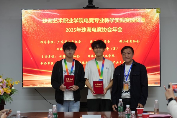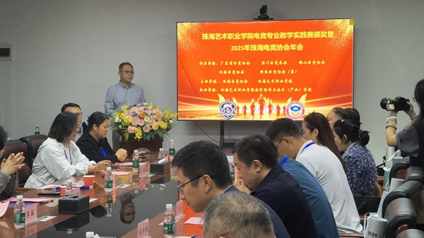 12月22日下午,由珠海艺术职业学院主办、数字经济与技术(产业)学院承办的2025年珠海电竞协会年会暨电竞专业教学实践赛颁奖仪式,在学校综合楼506会议室隆重举行。珠海传媒集团横琴珠传副总经理高晓雅、珠海电竞协会会长华登喜、金湖集团董事长周奕丰、北京师范大学广告设计学院广告系主任兼硕导沈伟教授、澳门电竞总会副会长梁炳超,以及广东省电竞协会、佛山电竞协会、横琴电竞协会(筹)等多方代表应邀出席。珠海艺术职业学院常务副校长陈传毅、教务处副处长兼党委组织部部长李英、教务处副处长董莹、数字经济与技术(产业)学院院长涂宇宁、副院长侯小军、副院长冷寒艳等校内领导与师生代表共50余人齐聚一堂,共同见证电竞专业教学实践赛事收官,共商粤澳大湾区电竞产业发展新篇。